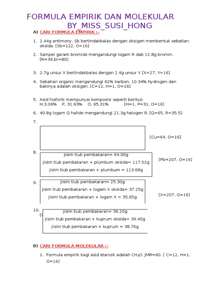 Formula Molekul Formula Empirik Dan Formula Struktur Pdf